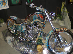 There's also an art show at GenCon for fantasy art, and one guy brought along his wizard-ified motorcycle. Now with 30% more skulls!